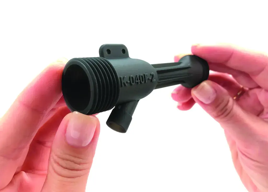 • Figure 4 TOUGH-BLK 20, a strong ABS-like black plastic with industry-leading UV stability for high performance prototyping and production applications where lifecycle stability is critical and mechanical properties fit. It provides high precision, smooth surface finish and exceptional sidewall quality with minimal finishing. At TCT 2019, the company will showcase a threaded water hose that demonstrates the look-and-feel of injection molded ABS plastic with fine detail and smooth surface finish for form and fit testing.