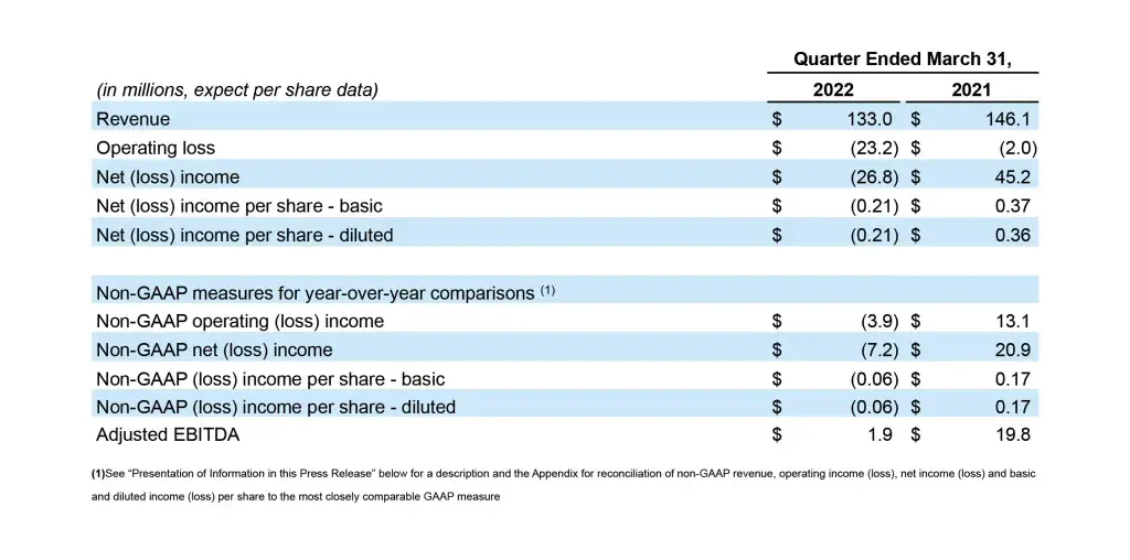 • Diluted GAAP loss per share of $0.21, and diluted Non-GAAP loss per share(1) of $0.06