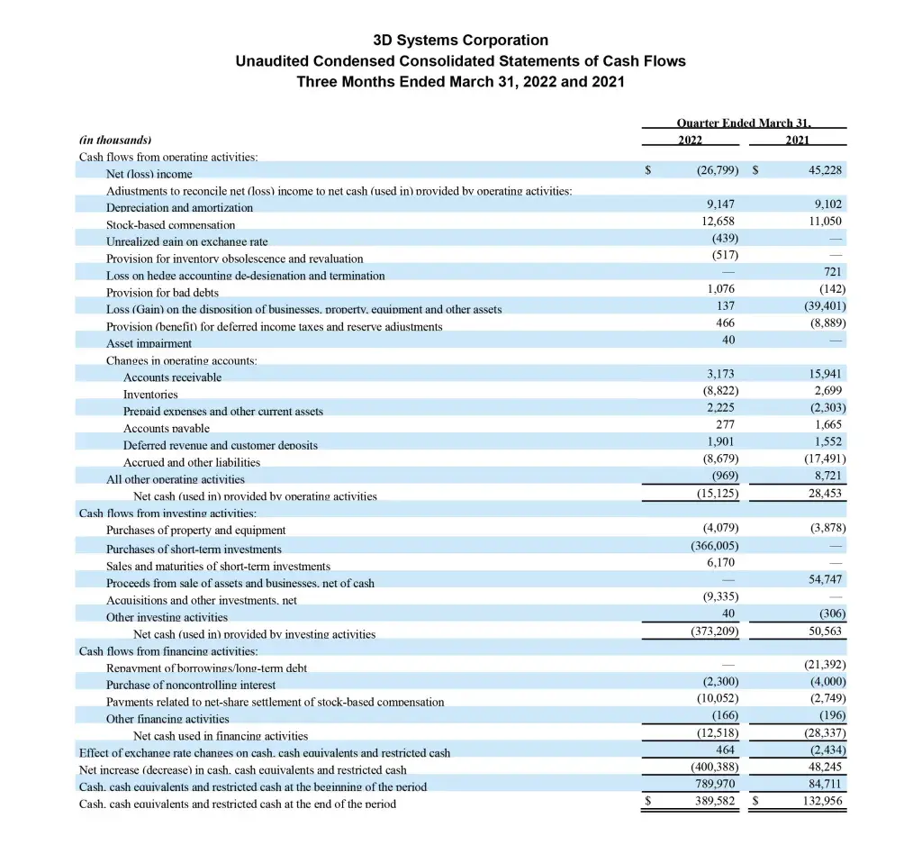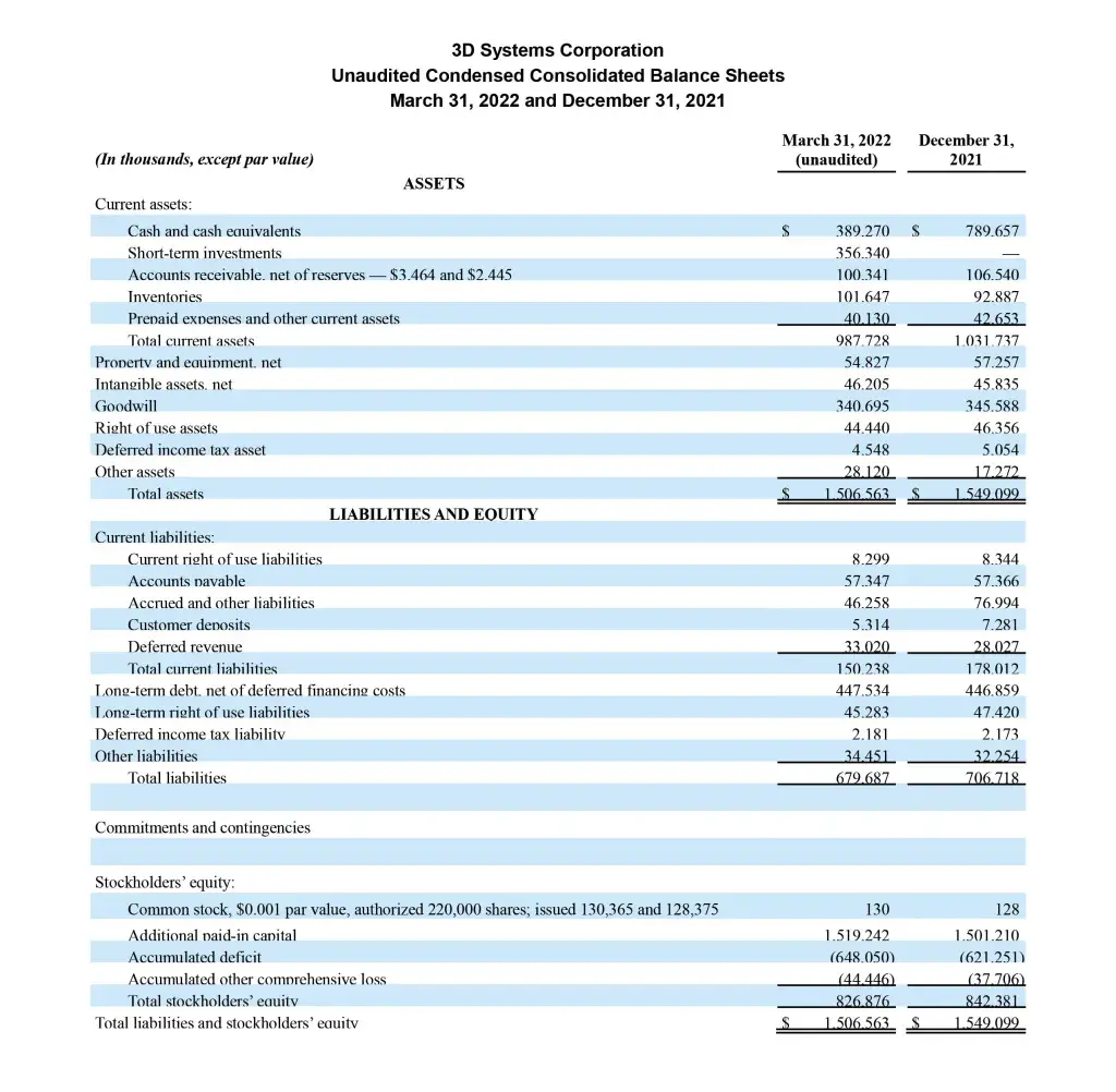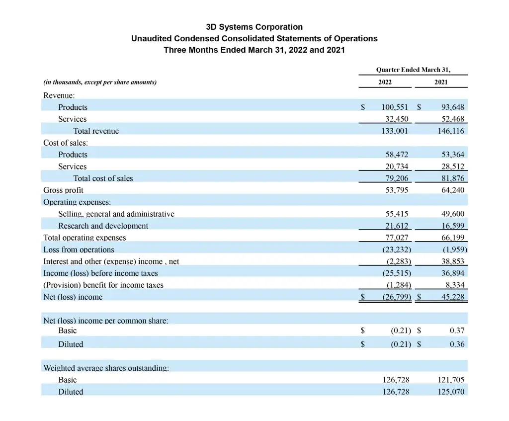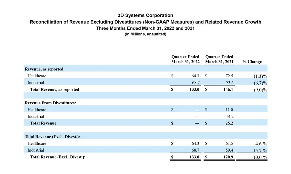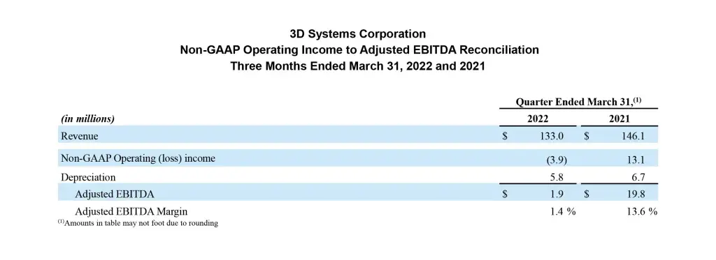 ROCK HILL, South Carolina - May 9, 2022 - 3D Systems Corporation (NYSE:DDD) announced today its financial results for the first quarter ended March 31, 2022.