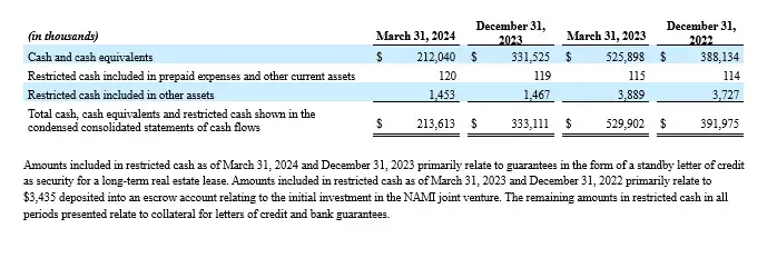 At March 31, 2024, the company had cash and cash equivalents of $212.0 million, a decrease of $119.5 million since December 31, 2023. The decrease was due primarily to the repurchase of our Convertible notes of $87.2 million, cash used in operations of $25.5 million, capital expenditures of $3.2 million, and taxes paid related to net share settlement of equity awards of $1.7 million. At March 31, 2024, the company had total debt net of deferred financing costs of $211.1 million.