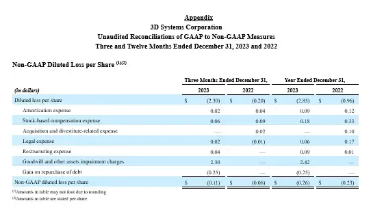 To calculate the non-GAAP measures, 3D Systems excludes the impact of the following items: