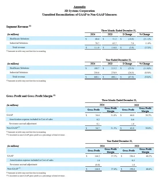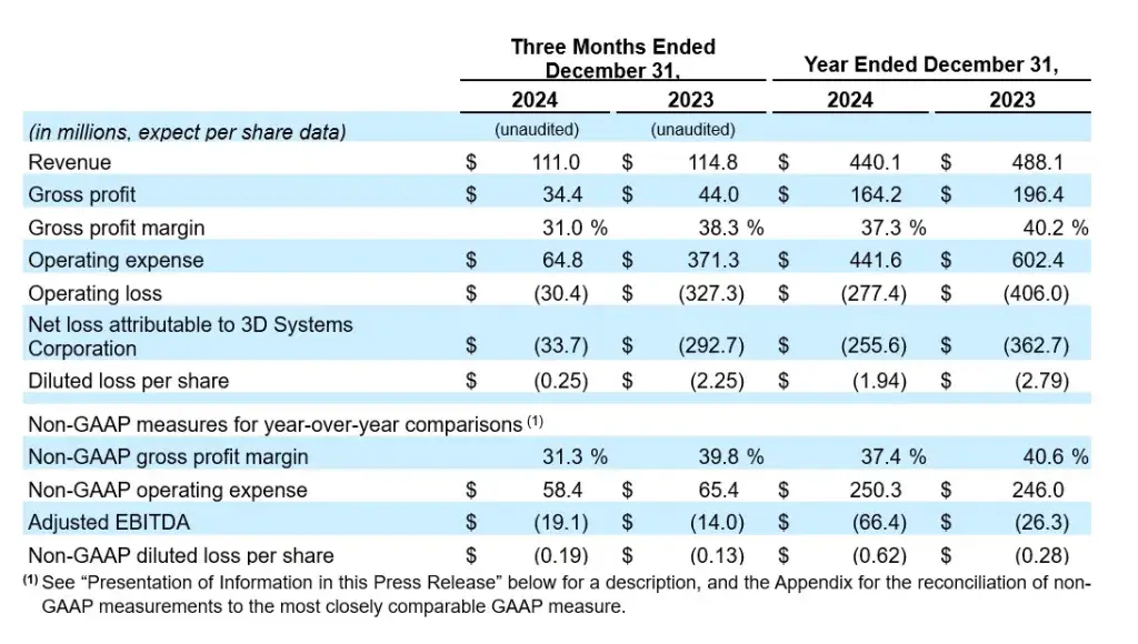 ROCK HILL, South Carolina - March 26, 2025 - 3D Systems Corporation (NYSE:DDD) announced today its financial results for the fourth quarter and full year ended December 31, 2024.