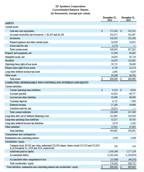 Balance sheet cash and cash equivalents of $171 million as of December 31, 2024. Proceeds from Geomagic sale to further strengthen balance sheet in Q2.