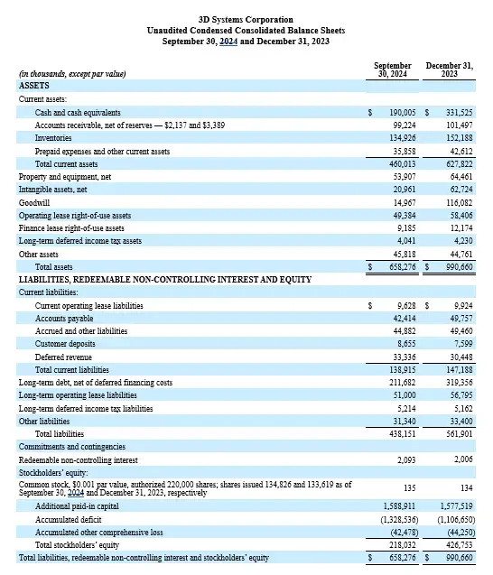 ROCK HILL, South Carolina - November 26, 2024 - 3D Systems Corporation (NYSE:DDD) announced today its financial results for the third quarter ended September 30, 2024.