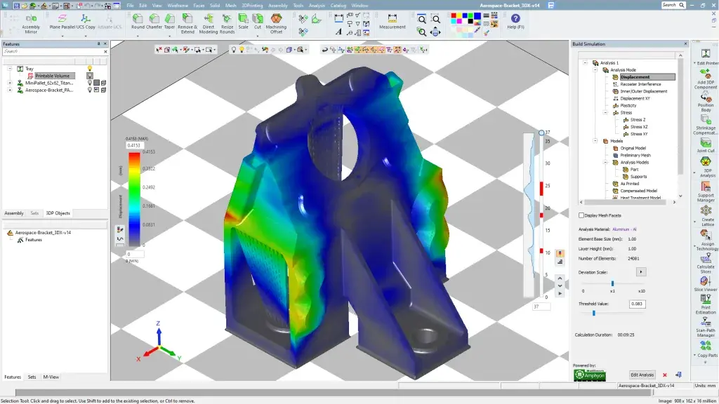 - Easily achieve successful prints with automated tools & workflows: A new power-supports capability fully automates support generation for multiple geometries with the click of a button. In addition, enhanced build simulation capabilities provide designers with clear and immediate feedback on their design decisions.
