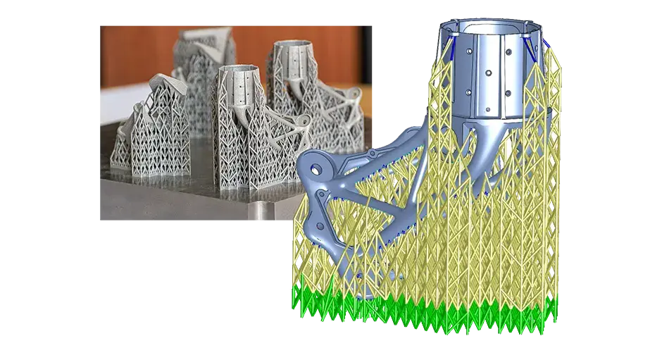 The production process to create this aerospace bracket in seven steps integrates additive technologies, traditional metal technologies and innovative software solutions to achieve high-quality, repeatable parts at an optimized cost per part.