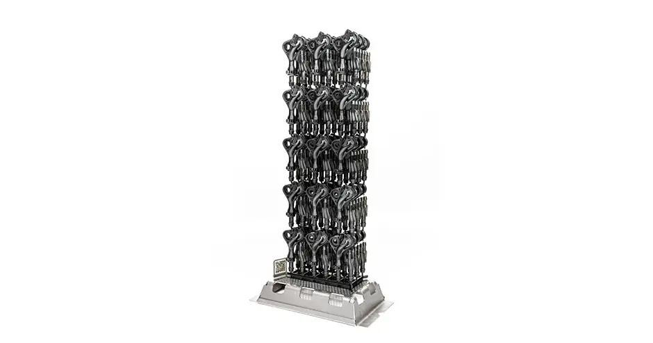 For increased automation in post-processing, these spinal cages in LaserForm Ti Gr23 (A) were produced using System 3R Tooling. This is possible due to the collaboration between 3D Systems and GF Machining Solutions to create a full production workflow - integrating metal additive and traditional technologies and innovative software solutions for optimized cost per part.