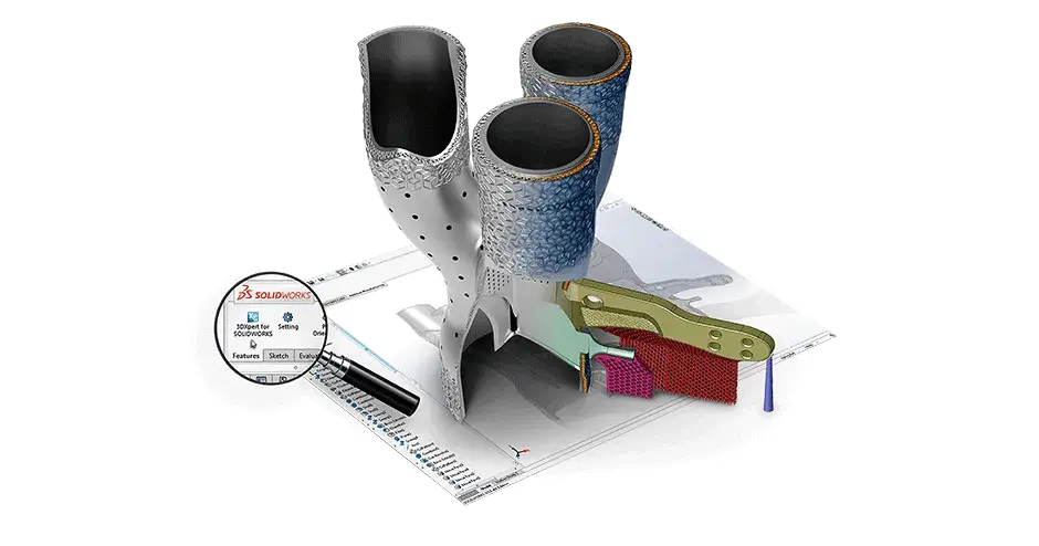 3DXpert for SOLIDWORKS is an add-on for SOLIDWORKS, extending SOLIDWORKS design capabilities with a complete design for additive manufacturing (DfAM) toolset, equipping designers with everything they need to prepare and optimize their designs for 3D printing.