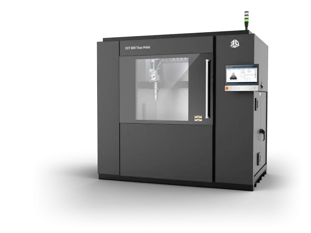 ROCK HILL, South Carolina, June 18, 2024 – Today, 3D Systems (NYSE:DDD) announced the latest addition to its industry-leading portfolio of EXT Titan Pellet systems — the EXT 800 Titan Pellet. With a build volume of 800 x 600 x 800 mm, this new pellet extrusion system harnesses the speed, reliability, and efficiency of the Company’s large-format EXT Titan Pellet systems (EXT 1070 Titan Pellet and EXT 1270 Titan Pellet) in a more compact format with lower upfront investment. As a result, manufacturers can take advantage of the lights-out, production-ready EXT 800 Titan Pellet to fabricate more modestly sized functional prototypes, tooling, fixtures, sand casting patterns, thermoforming molds, and end-use parts. With print speeds up to 10x faster and 10x lower material costs than traditional filament-based systems, the EXT 800 Titan Pellet is designed to efficiently, cost-effectively address applications in a breadth of markets including foundries, aerospace & defense, thermoforming, prosthetics & footwear, and research.
