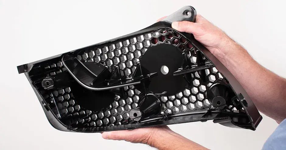 TOYOTA Gazoo Racing manufactured this automotive grill CNC fixture using 3D Systems’ new Accura AMX Rigid Black – achieving a production part with smooth sidewalls & superior isotropic strength.