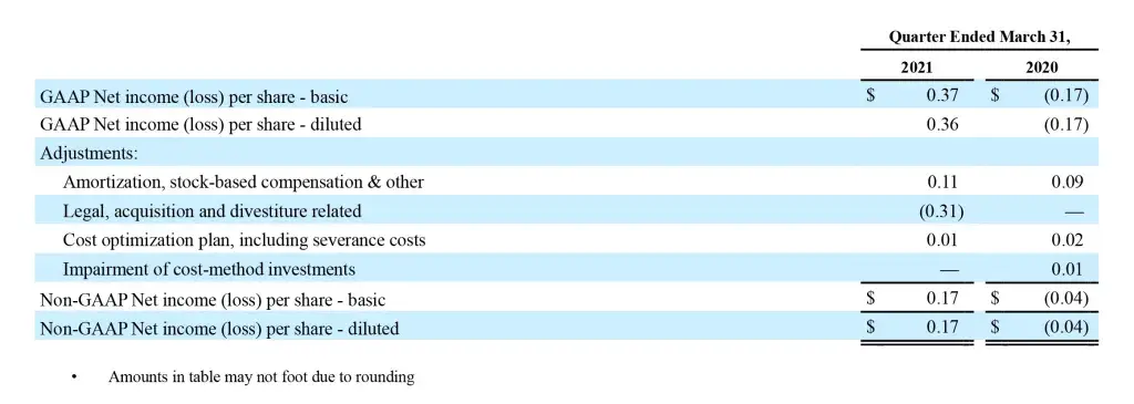 - Q1 2021 Non-GAAP earnings of $0.17 per diluted share compared to a loss of $0.04 per share in Q1 2020