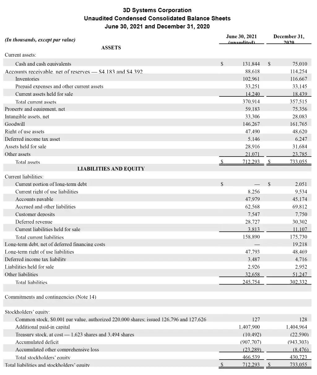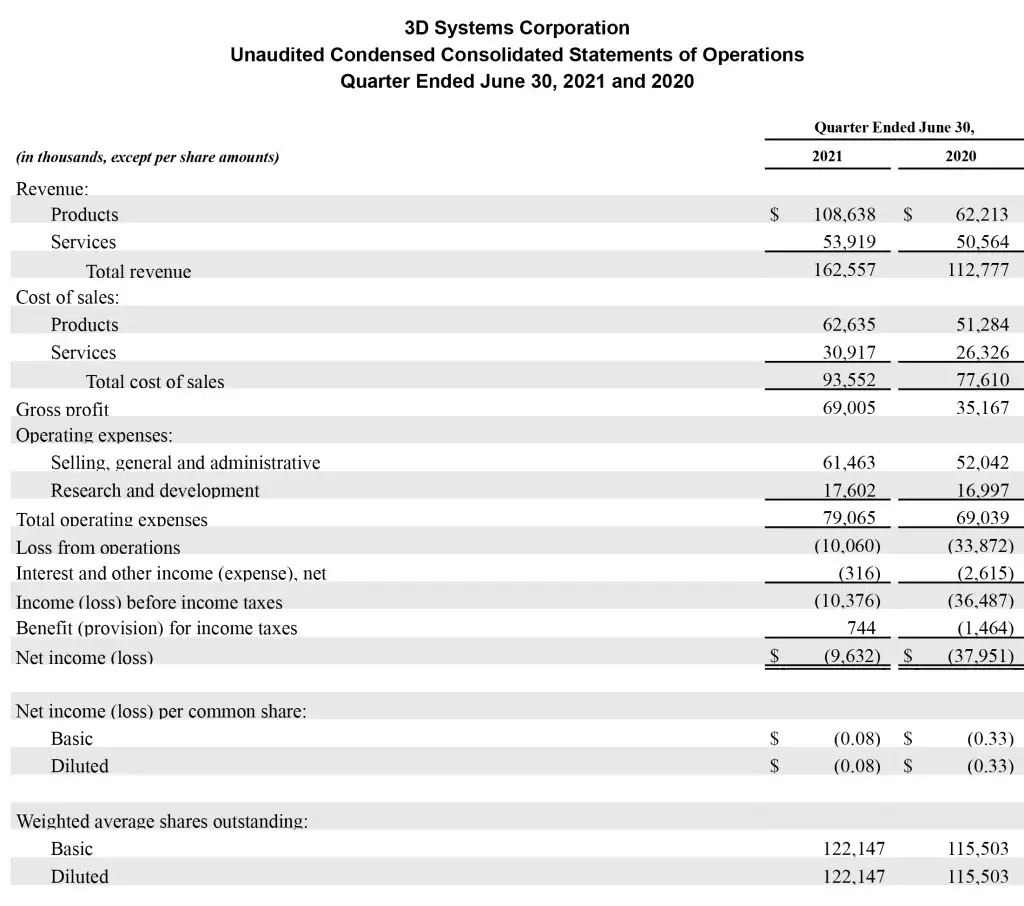 ROCK HILL, South Carolina - August 9, 2021 - 3D Systems Corporation (NYSE:DDD) announced today its financial results for the second quarter ended June 30, 2021.