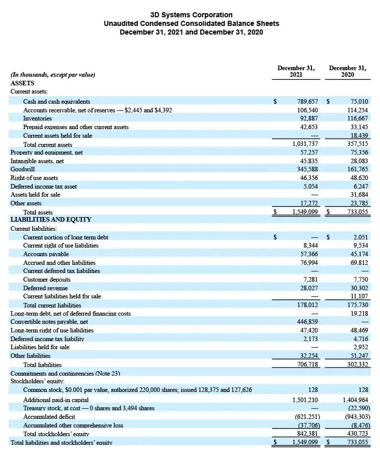 3D Systems will file its Annual Report on Form 10-K for the year ended December 31, 2021 with the Securities and Exchange Commission on March 1, 2022. The company will host a conference call and simultaneous webcast to discuss these results this afternoon, which may be accessed as follows:
