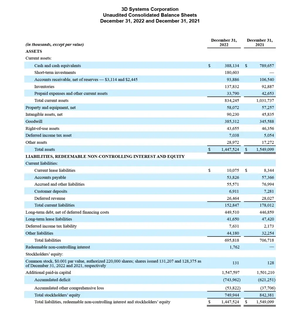 ROCK HILL, South Carolina - February 28, 2023 - 3D Systems Corporation (NYSE:DDD) announced today its financial results for the fourth quarter and full year ended December 31, 2022.