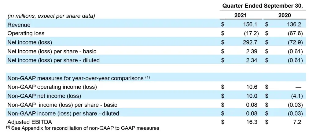 - Revenue of $156.1 million reflects double-digit growth versus third quarter 2020