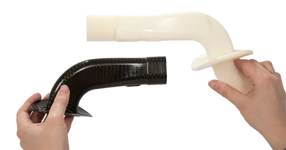 3D Systems' toughest production-grade SLA resin, Accura AMX Durable Natural, is formulated to withstand repeated flexing and bending, as in this mandrel tool which can be removed whole from convoluted carbon fiber tubing.
