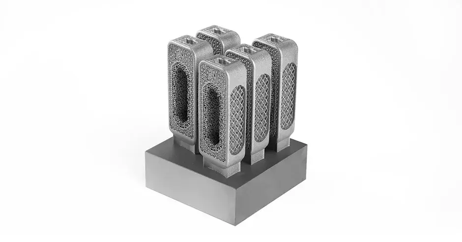 For increased automation in post-processing, these spinal cages in LaserForm Ti Gr23 (A) were produced using System 3R Tooling. This is possible due to the collaboration between 3D Systems and GF Machining Solutions to create a full production workflow - integrating metal additive and traditional technologies and innovative software solutions for optimized cost per part.