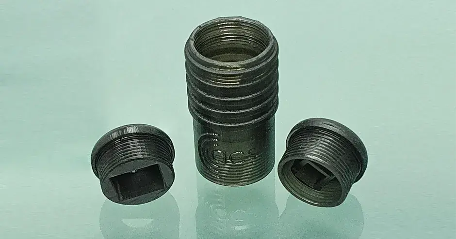 ACS produces this two pin comms adaptor for in-ear communication headsets using 3D Systems’ Figure 4 Direct Digital Production solution. The part comprises a central body and two end caps - one houses a 3.5mm stereo socket, the other includes spring contacts to work with the two pin connector from the radio. A very fine pitch metric thread is printed into the parts and they are functional without any special post-processing or thread cutting required. (Image courtesy of ACS Custom)
