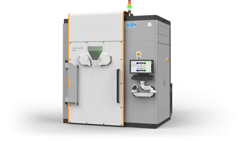 The DMP Flex 350 Dual enables flexible application use and quick-swap build modules, and a central server to manage print jobs, materials, settings, and maintenance for 24/7 productivity.